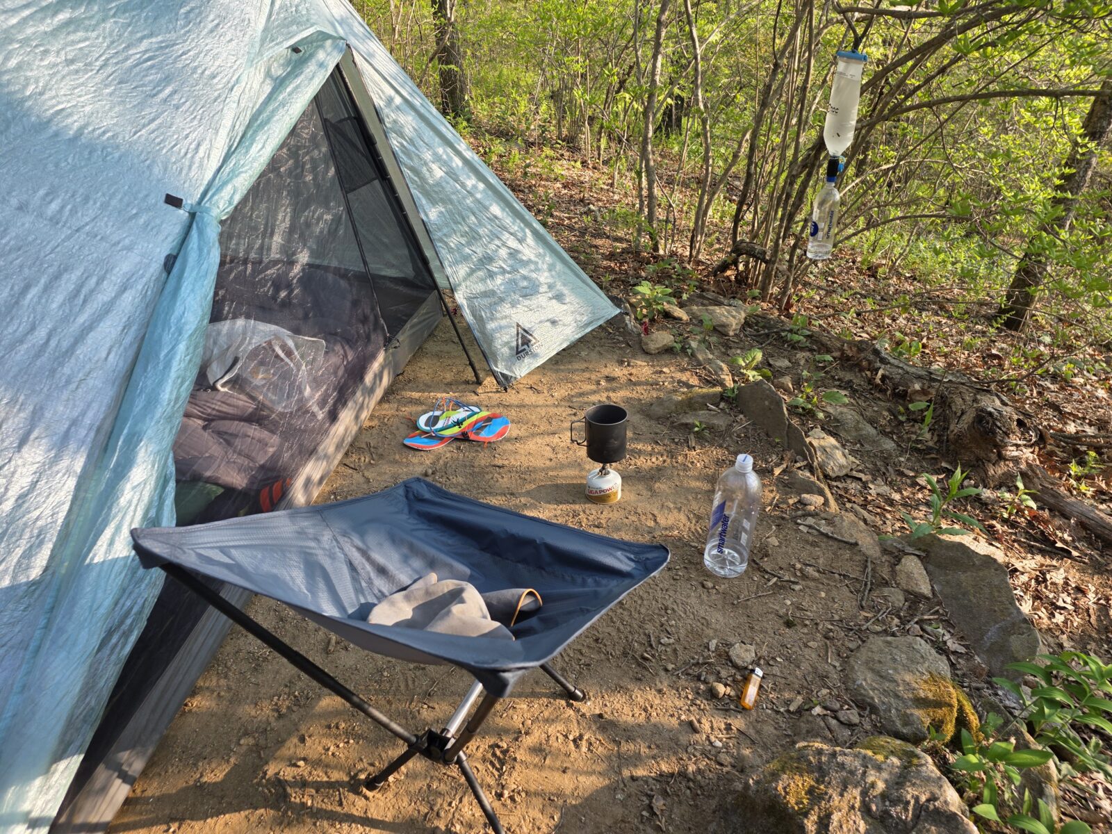 Shelters and even camp sites are relatively sparse, maybe every 4-8 miles. There’s also a weird idiosyncrasy with the Georgia section of the AT, which is that a prime stretch on the 3rd or 4th (depending on your pace) doesn’t allow camping anywhere unless you have a hard-sided bearproof food container. Because these containers aren’t necessary for any other part, I didn’t have one, so I absolutely had to traverse that ~8 mile stretch in one day.